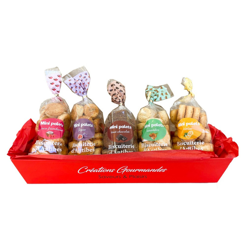Cette composition découverte signée la Biscuiterie d’Antibes réunit cinq sachets gourmands de mini-palets aux saveurs variées :